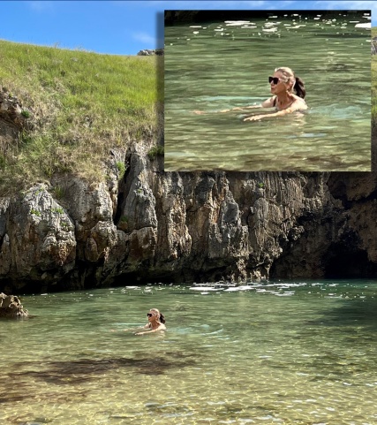 Un moment, je me suis assise sur des roches en pics parce que'on entendait les vagues dans une caverne en dessous des rochers et ça faisait beaucoup de bruit, comme du tonnerre. C’était vraiment impressionnant. On a eu une toute petite percée de soleil et je découvre un petit lagon, créé par une fissure souterraine dans les rochers. Je descends, j’enlève mes vêtements et je me suis baignée en sous-vêtements. Pierre, c’était incroyable de se trouver dans cette eau vivifiante toute pure, le sentiment d'être seule au monde. Je pensais à toi bien sûr, je savais combien tu aurais aimé cela.