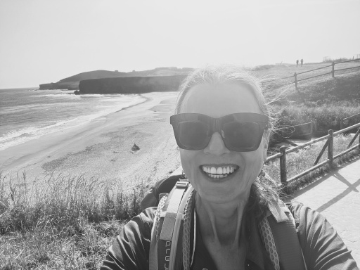 Pour se rendre ici, Josée a emprunté le chemin côtier, identifié comme le chemin bleu, plus exigeant en terme de montées et descentes, mais ça en vaut la peine. Le chemin officiel est le chemin jaune, généralement plus facile, mais aussi un peu moins intéressant car loin de la mer. Le chemin bleu est moins bien balisé, toutefois. Heureusement, Josée utilise une application, Buen Camino, qui lui permet de suivre le chemin sans se perdre. Moins de gens empruntent le chemin côtier. Aujourd'hui, elle n'a croisé personne. Parfois elle ne rencontre que des vaches et des moutons. Je la cite: je me retrouve parfois à marcher seule à piler dans la marde des vaches. :-)